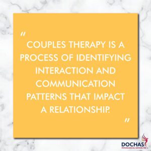 Couples therapy is a process of identifying interaction and communication patterns that impact the friendship, intimacy, and the fulfillment of needs of one or both partners in a relationship. In our day-to-day lives, our patterns of interaction can be so familiar that we don’t see them. This is where therapy can be helpful.